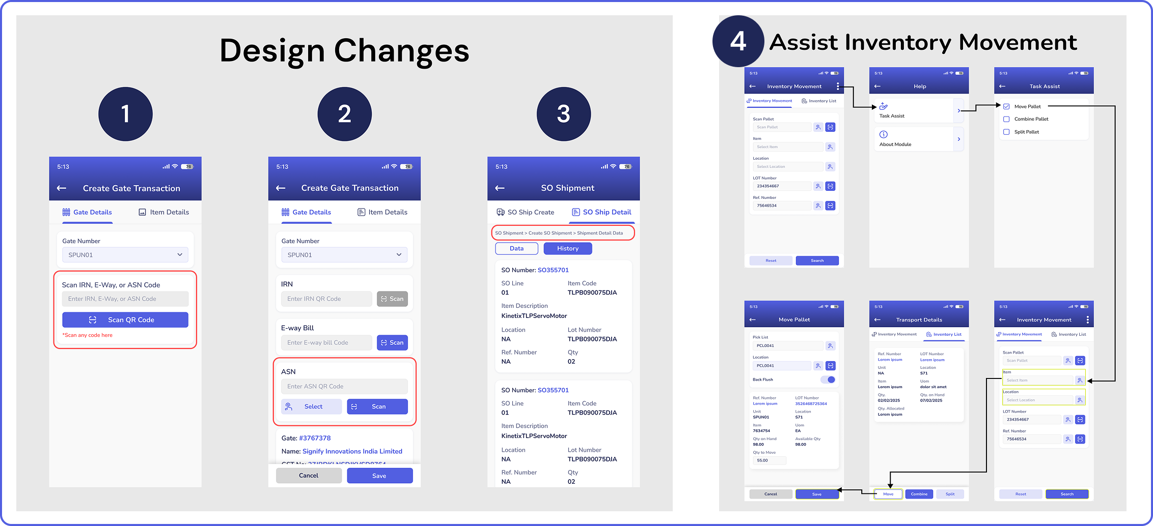 References from accessible third-party platforms were used for a few commonly existing modules, such as goods return and receipt lists. These references were used just to refer to the data present in it and not the design.