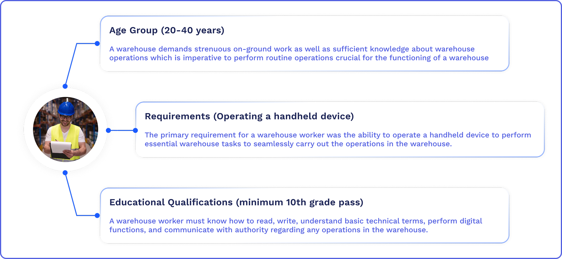 4. Could you please provide some insight into the educational background and skill level of the primary users, such as warehouse workers? This will help us tailor the design to better suit their needs and ensure ease of use.